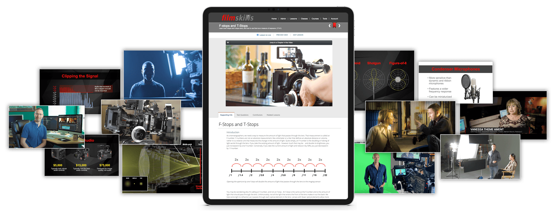FilmSkills Unlimited provides library access to the same content lessons as the courses. Whereas courses offer tests and a Certificate of Completion, FilmSkills Unlimited is designed as library access, so you can access the lessons whenever you want.